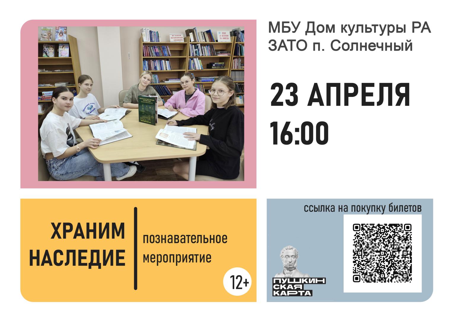 23 апреля в 16:00 в Доме культуры Российской Армии для старшеклассников пройдет познавательное мероприятие «Храним наследие», посвящённое Международному дню памятников и исторических мест, с целью обогатить свои знания о культурных объектах исторического наследия Ужурского округа. Мероприятие направлено на повышение осведомлённости молодежи о значимости памятников истории и культуры, их роли в сохранении национальной идентичности, стимулирование исследовательской деятельности в области истории и культуры; развитие культурного туризма и привлечение внимания к историческим достопримечательностям. Именно этим достопримечательностям будет посвящено это мероприятие.